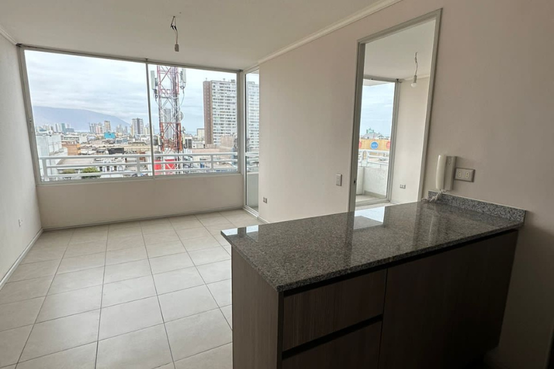 Este departamento en el Edificio Matiz Central recibe con una atmósfera de calidez y luz natural gracias a su privilegiada orientación sur que garantiza un clima fresco y agradable en cualquier época del año. Desde la entrada se aprecia un diseño de concepto abierto que integra de forma magistral el área social con una cocina moderna y funcional optimizando cada rincón bajo un estándar de máxima eficiencia urbana. El recorrido fluye naturalmente hacia el dormitorio independiente un espacio concebido como un refugio de absoluta tranquilidad y privacidad que regala una vista despejada hacia el horizonte de Iquique permitiéndote desconectar por completo del pulso vibrante de la ciudad. Para completar esta experiencia de confort el baño privado destaca por sus terminaciones contemporáneas y estilo impecable conformando una propiedad acogedora y estratégica situada justo en el corazón neurálgico de la comuna a pasos de los principales centros de servicios y el comercio esencial de la región.